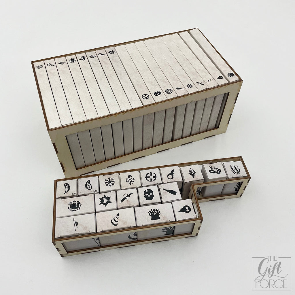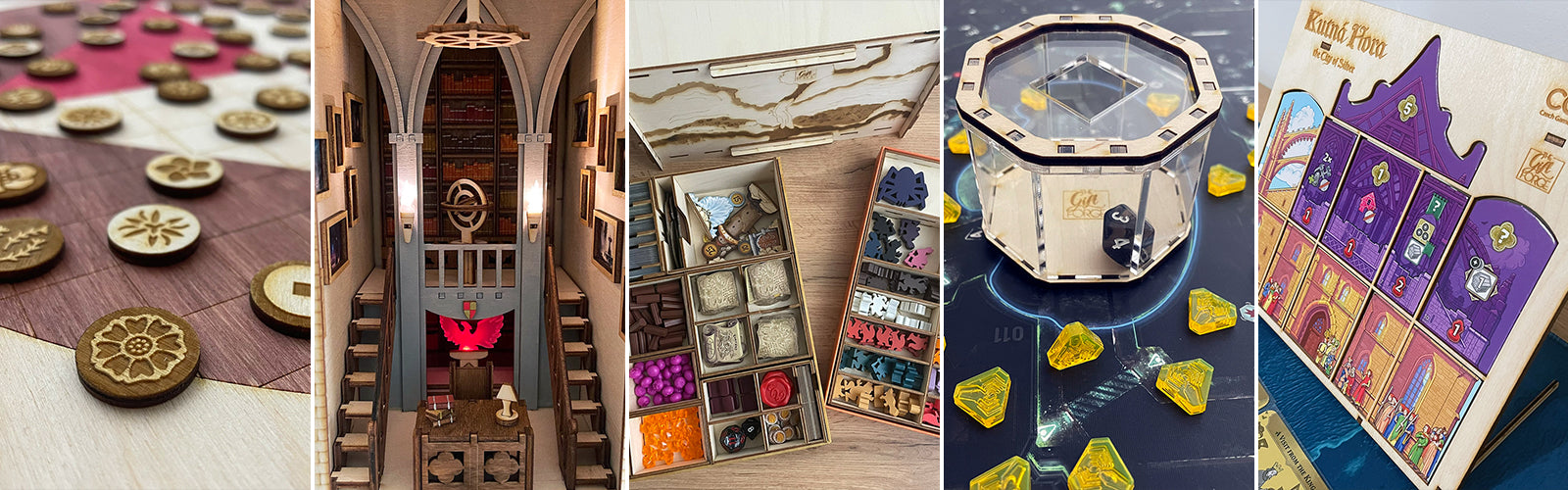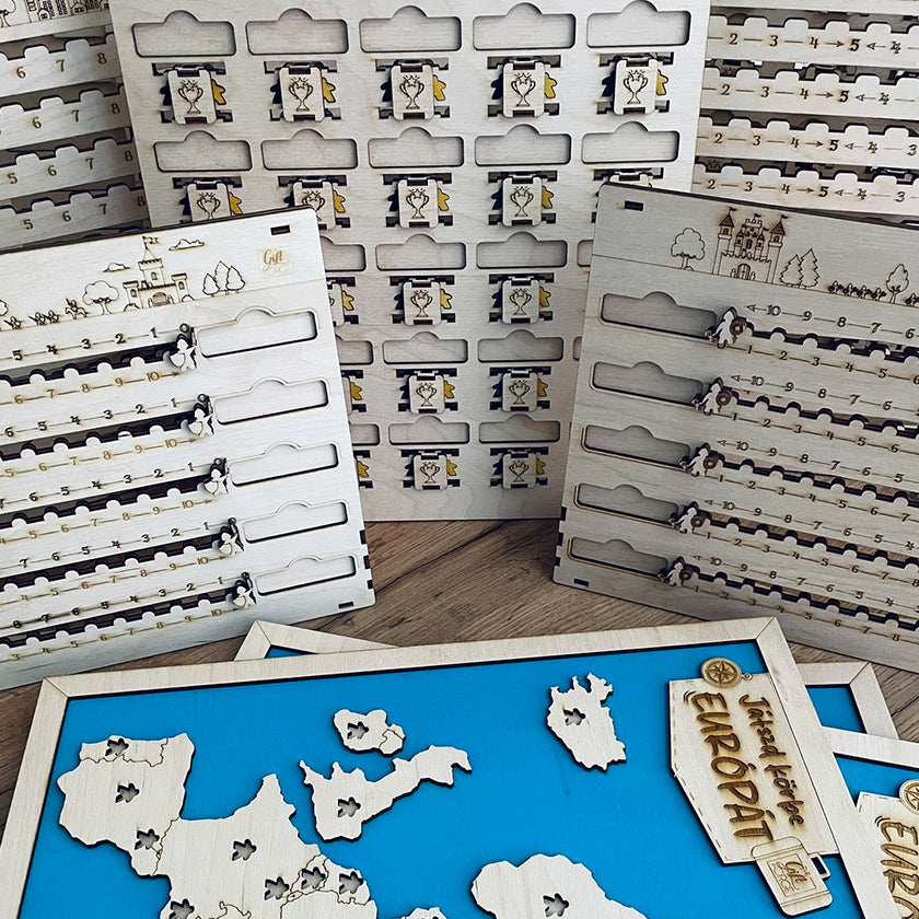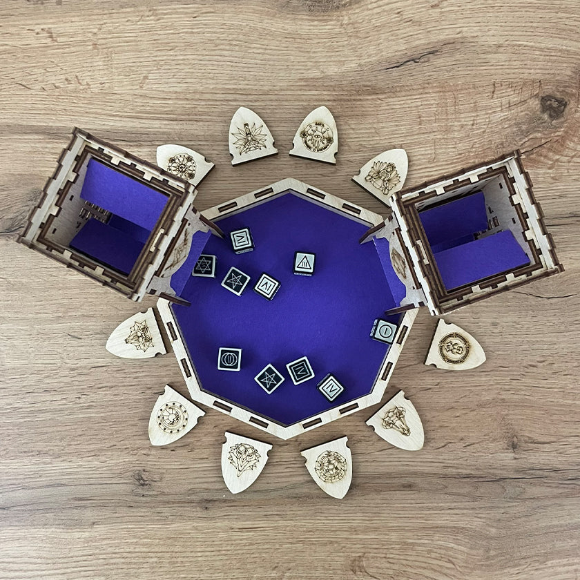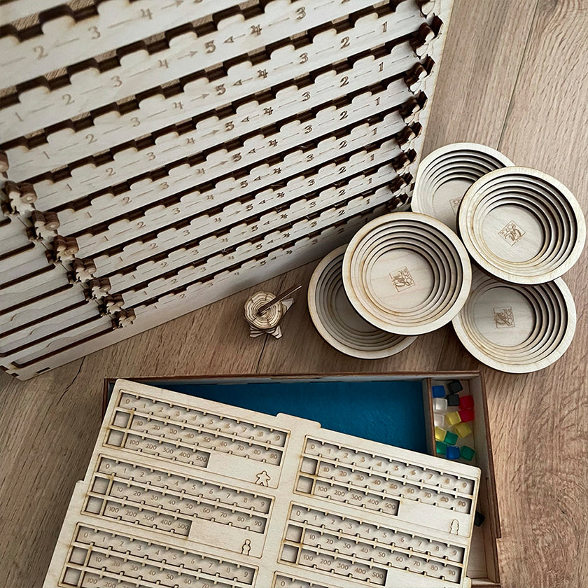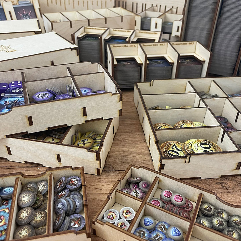 Szeretnéd rendezetten tárolni a társasjátékaidat? Vagy szükséged van egy klassz kockatoronyra? Esetleg feldobnád az asztalképet néhány kiegészítővel? Akkor jó helyen jársz! Válogass kedvedre a termékeink között, és a megjelölt termékeken válaszd az extra gravírozást, hogy még egyedibb legyen a megrendelésed!
