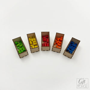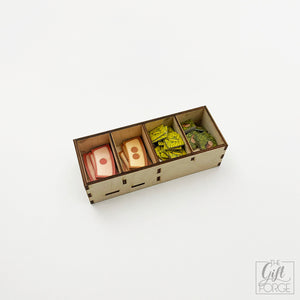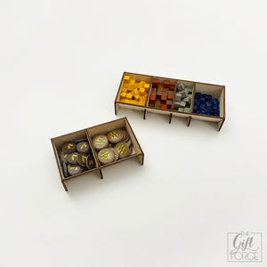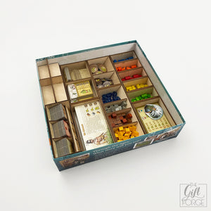A különböző kiadások, ill. a gyártásból fakadó eltérések miatt a társasjáték dobozának mérete eltérhet a tervezés során használt doboz méretétől. Az insert megfelelő illeszkedése érdekében, kérjük, hogy mérd le a saját példányod dobozának belső méreteit.