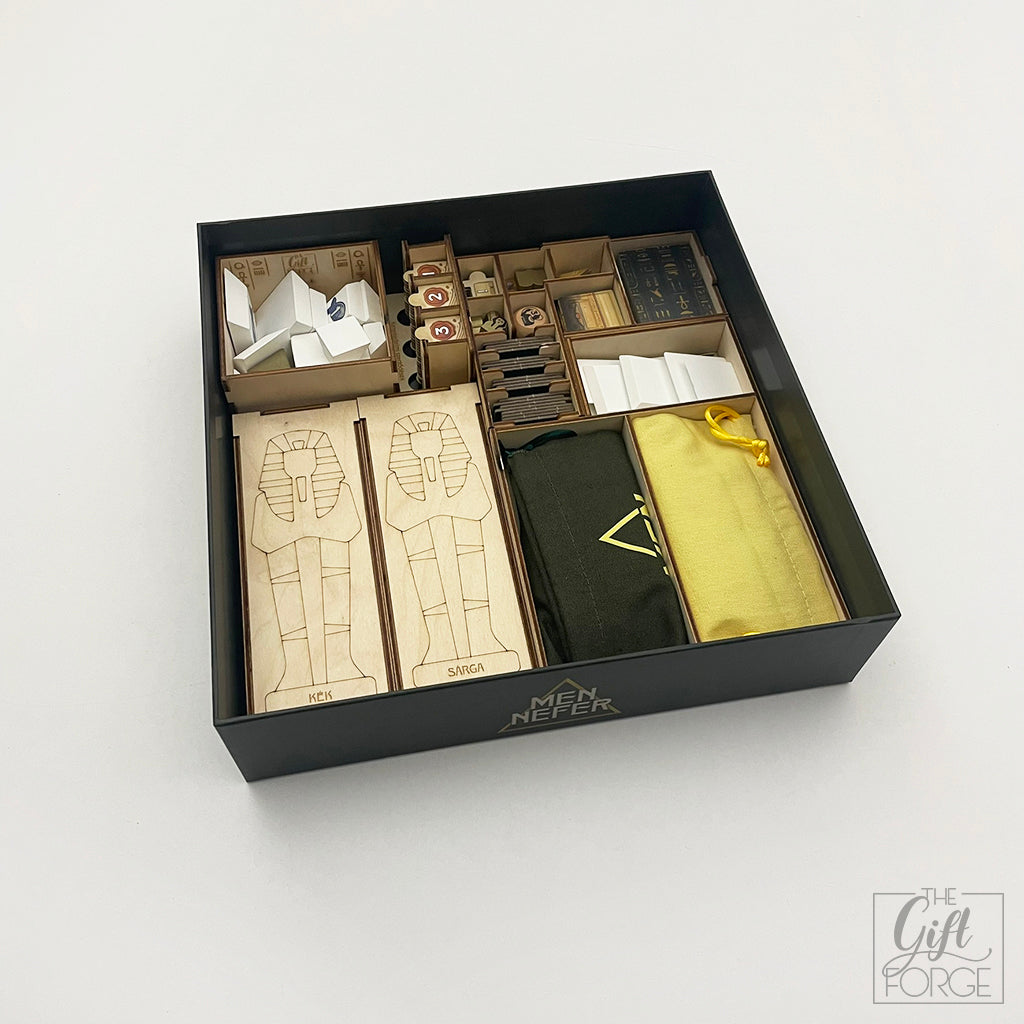 Hozd el az ókori Egyiptom rendjét a játékasztalodra ezzel a stílusos rendezővel! A Men-Nefer játékhoz készült insert rendszerezi a piramisokat, munkásokat és erőforrásokat, miközben te elmerülsz Memphisz dicsőségében. 🌞
