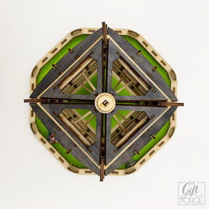 Tökéletes választás azoknak, akik prémium dologra vágynak. A pagoda három szintes épület részében két terelő gondoskodik arról, hogy randomizálva legyenek a kockák. Az alsó részén levő négy nyílás pedig arról, hogy más-más oldalon guruljon ki a végeredmény. 🏯